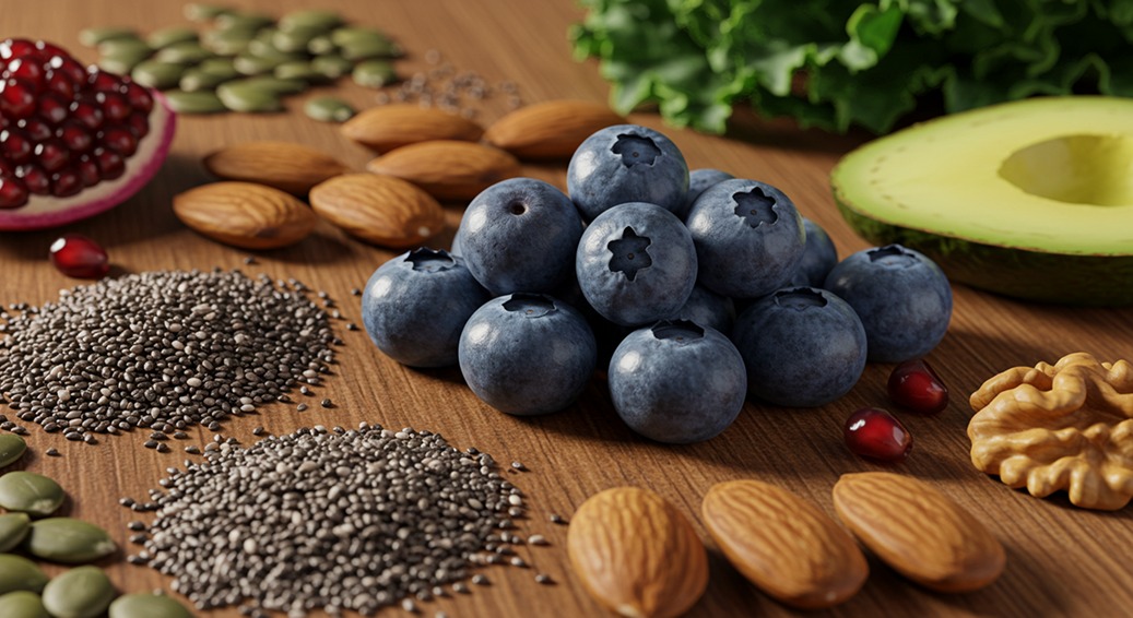 블루베리의 안토시아닌은 뇌로 이동해 신경세포 간의 결합을 촉진하고 뇌의 해마라는 기억력에 중요한 부위의 기능을 향상시킵니다. 68세 이상 노인 47명을 대상으로 16주간 블루베리를 복용시킨 결과, 기억력 상실이 늦춰졌으며 뇌 활동이 더 활발히 증가했습니다. 또한 65~80세 노인을 대상으로 실시한 임상시험에서도 야생 블루베리 분말을 섭취한 그룹에서 인지 기능 개선이 확인되었습니다. 블루베리는 항염증, 항산화 작용 등을 통해 뇌 자체를 보호하는 효과를 나타내 뇌혈관질환과 중풍 예방에도 효과적입니다.