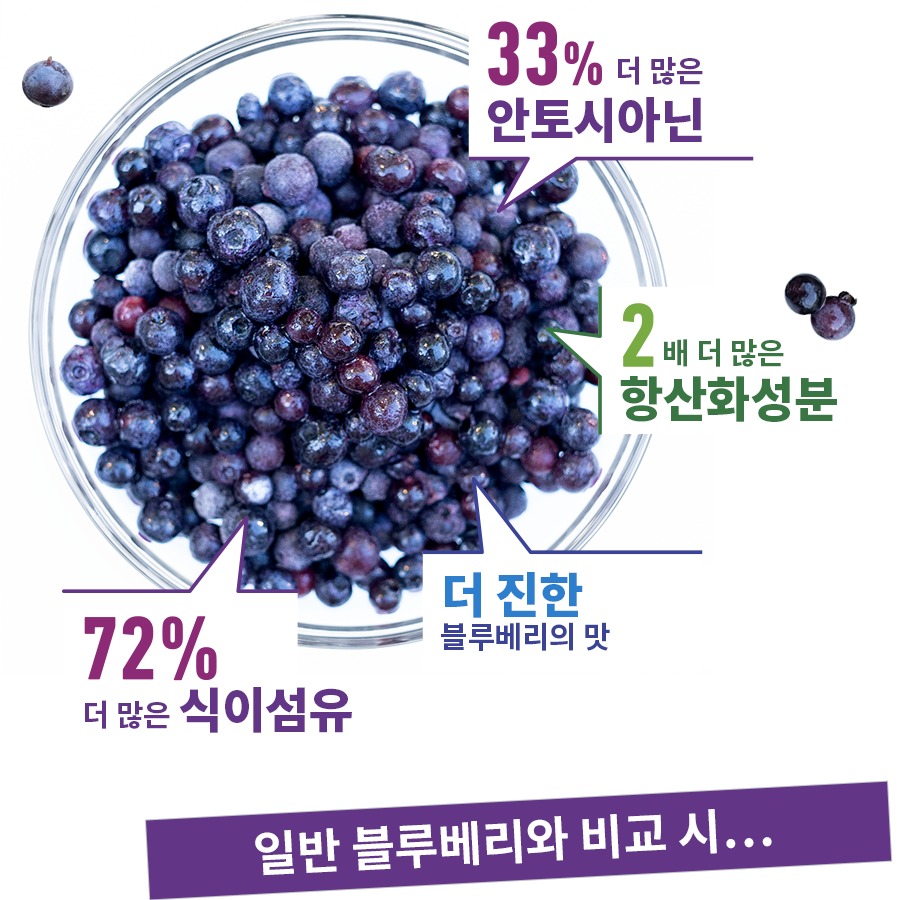 호주 뉴사우스웨일즈대 연구진의 연구에 따르면 블루베리를 냉동 보관하면 안토시아닌 농도가 더 높아져 항산화 효과를 배가시킨다고 발표했습니다. 또한 냉동 블루베리는 신선한 제품보다 더 오래 보관할 수 있고 언제든지 편하게 섭취할 수 있습니다.