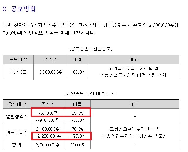 | 균등배정물량 | 750,000주 | 전체의 50% |