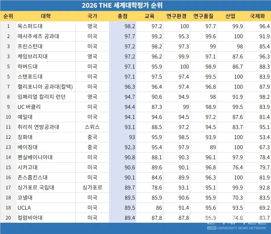 2026 국내 대학 순위 TOP 20